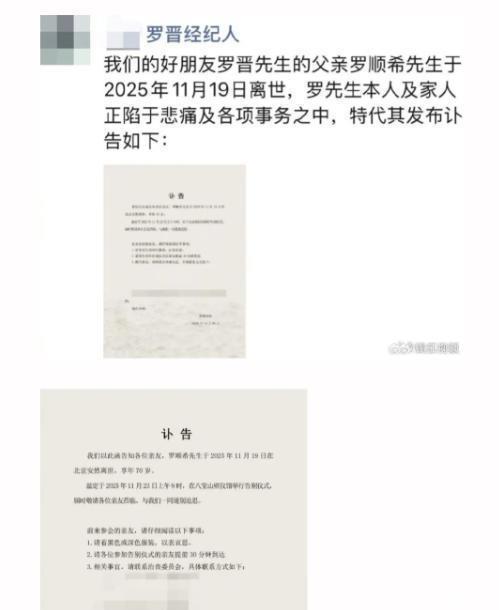 就在谣言最盛的时候,突然出现了转机。今年一月,罗晋的经纪人在朋友圈里发出了噩耗,说罗晋的父亲罗顺希先生在北京去世,享岁。罗晋和家人都沉浸在悲伤之中,专心致志地在打理父亲的后事。